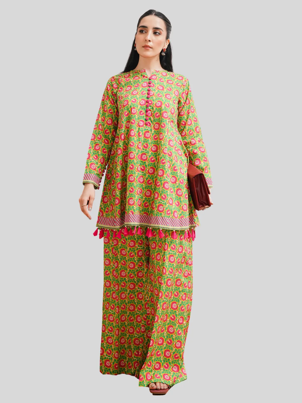 • Digital Printed Embroidered Cambric Shirt 2.5M